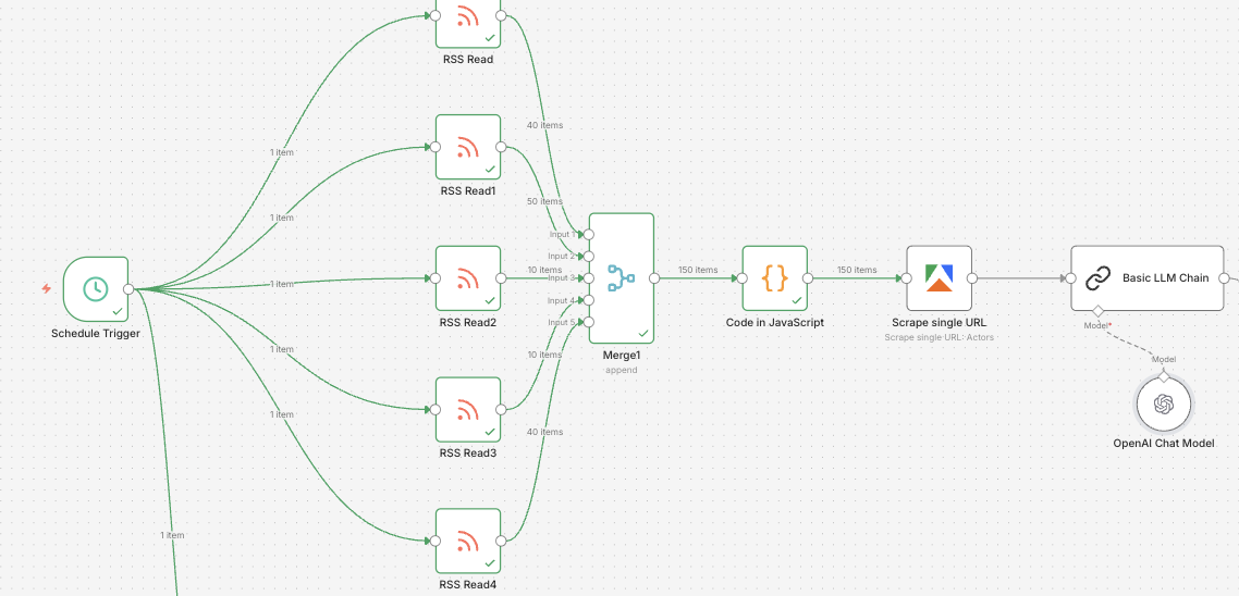 Layer 1 - RSS feeds merged + LLM prompt